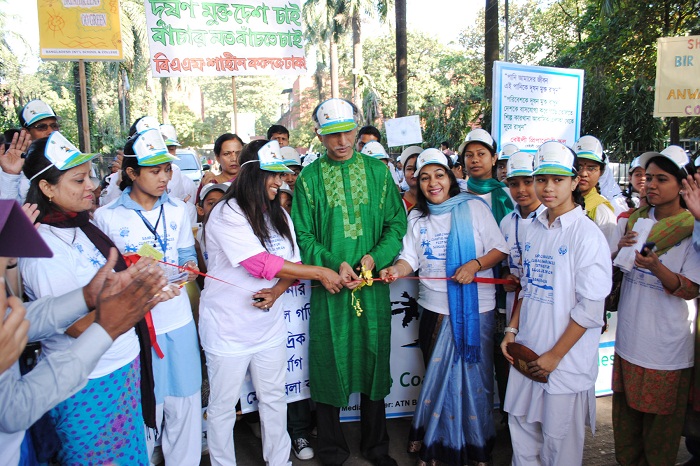 For the first time this kind of event involving the school children has been organized where almost 400 children from different schools like Viqarunnisa Noon School and College, Residential Model School and College , Bangladesh International School, Shaheen School and College, Baily Preparatory School, Motijheel Model School and College, Shahid Bir Uttam Lt Anwar Girls College, Adamjee School and College, Bangladesh Bank Colony School , Jhigatola Government primary school and more participated in the rally and in different competitions like SMS slogan , mobile phone photography, recycle product, art competitions, poster competitions etc.